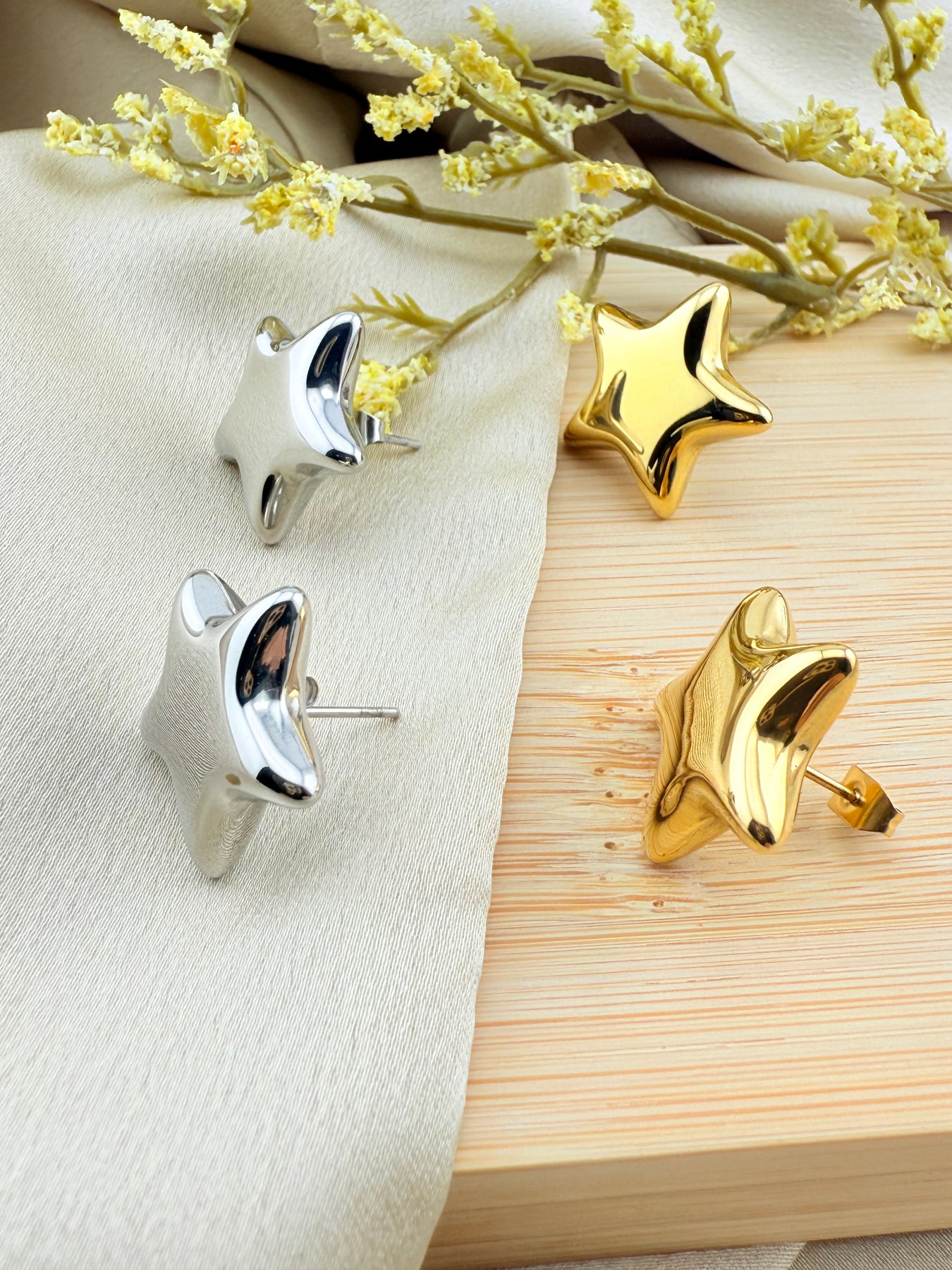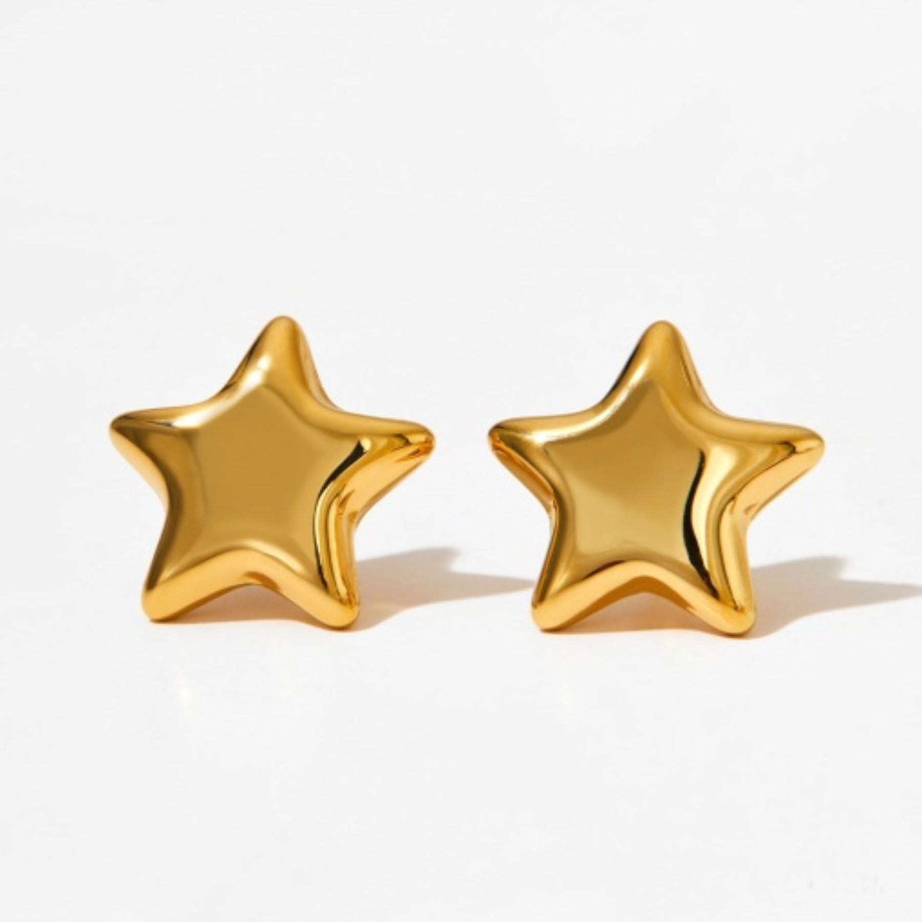Cercei în formă de stea din oțel inoxidabil, rezistenți și strălucitori, creați pentru a fi purtați zi de zi. Design modern și ușor de asortat.