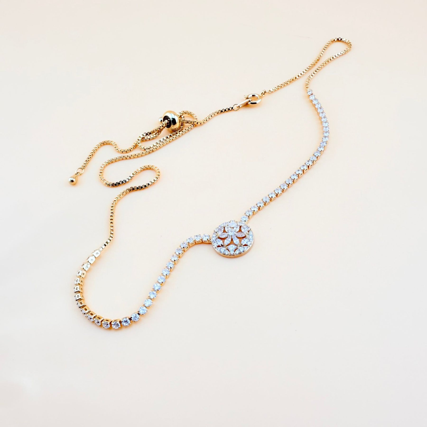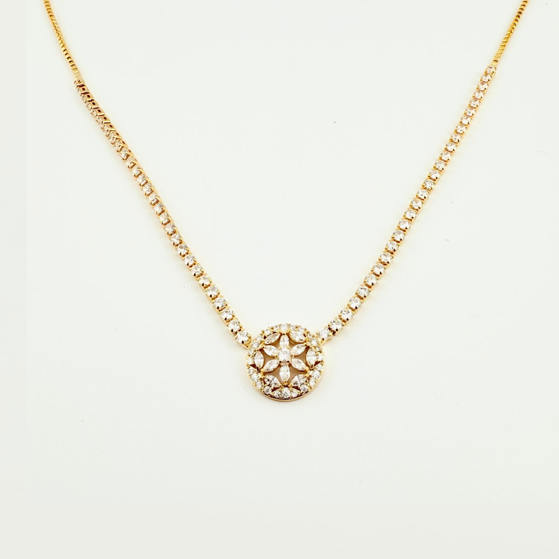 Elegant și delicat, acest colier impresionează prin designul său rafinat și finisajul  care oferă o strălucire caldă și sofisticată. Liniile fine și detaliile atent lucrate creează un efect grațios, perfect pentru ținute elegante sau evenimente speciale.
