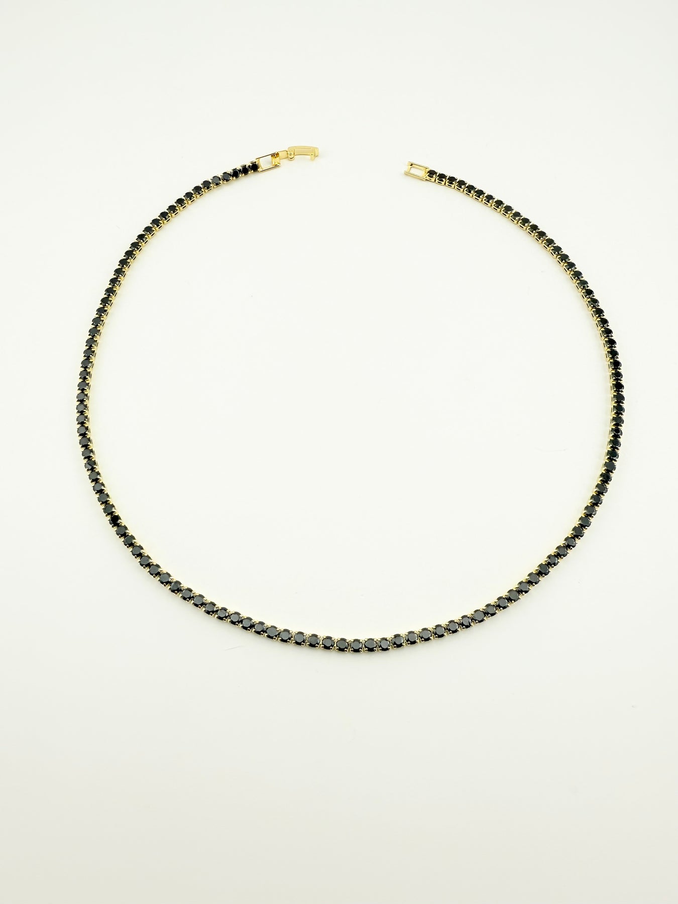 Strălucire sofisticată, colierul tennis decorat cu pietre negre, perfect pentru un look statement.