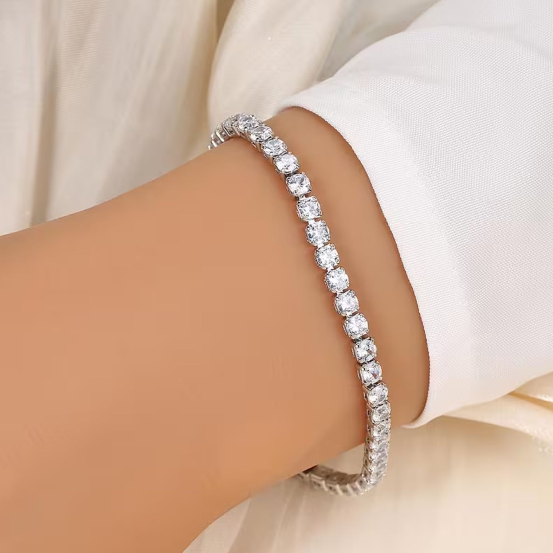 Rafinată și strălucitoare, această brățară adaugă un plus de eleganță oricărei ținute de ocazie. Reflexiile delicate ale pietrelor oferă un efect sofisticat, evidențiind grațios încheietura mâinii. Pietrele de zirconiu oferă aspectul luxos, reflexii spectaculoase și rezistență ideală pentru purtare zilnică.