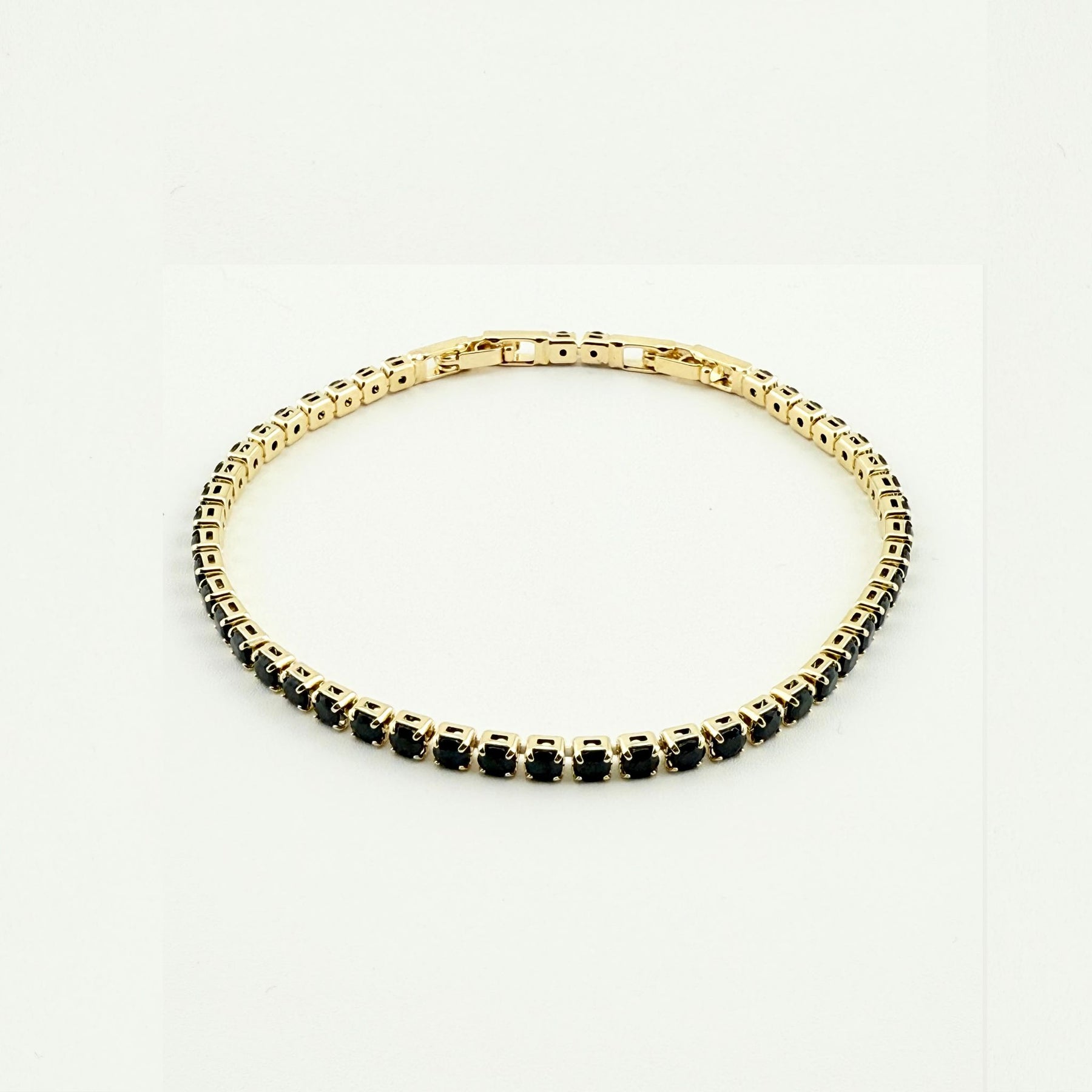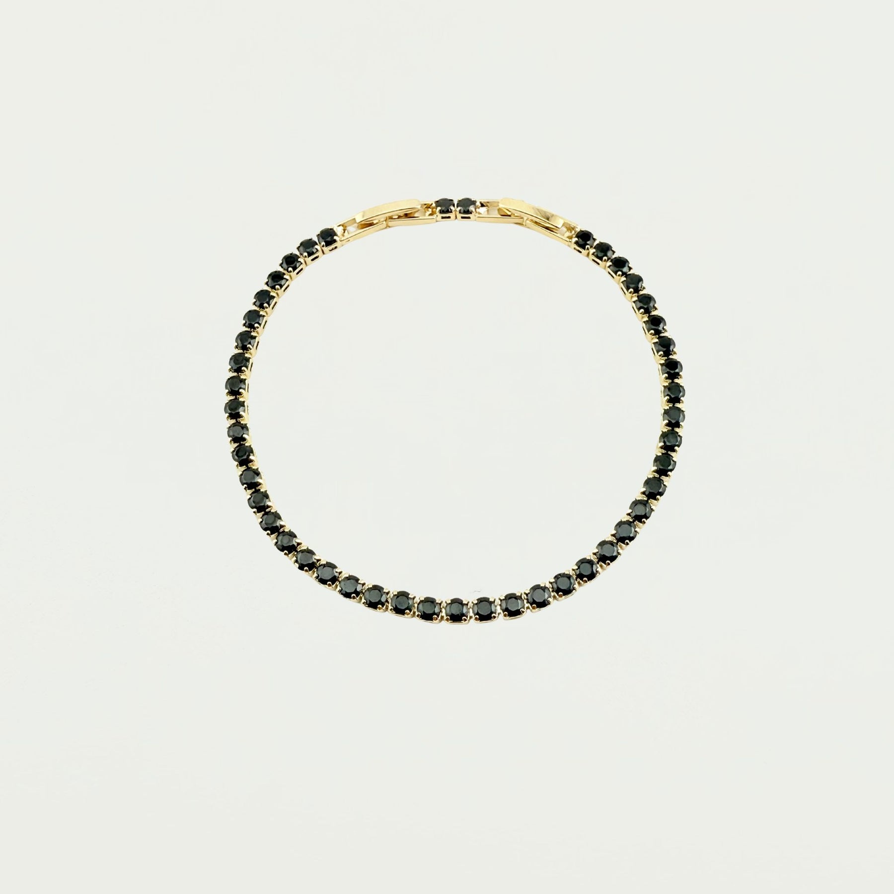 Strălucire sofisticată, brățara tennis decorată cu pietre negre, perfectă pentru un look statement.
